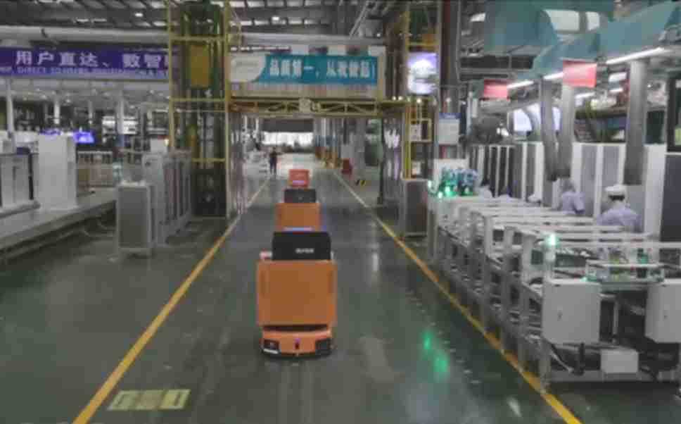 为车载冰箱物流配送打造的智能解决方案,,,,包含产中物流通过潜伏举升AMR搬运至线边,,,,产后成品物流智能仓储,,,流程包含产中物流智能齐套入库,,线边安灯叫料AMR智能配送至线边,,,成品入库、、、、出库,,,通过无人堆高车机器人,,,智能仓储管理替代人工作业管理,,,实现更高存储、、更高效率、、、、更具柔性化的解决方案。。。。